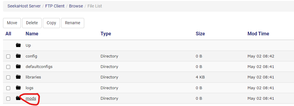 - Now you can upload your mods to the mod folder once the server is started, just make sure to stop your server again before uploading them. You can do this a few ways.